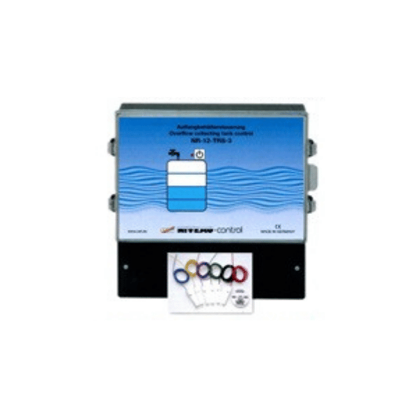 Level Regulator with graphical water level indicator for swimming pools and whirlpools with overflow channel. In addition to the water level control, the control system also contains a dry running protection and force the filter pump to switch-on. 5 or 6 stainless steel electrodes are hung in the collection tank and are connected to the control system to determine the water level. These electrodes have different colored wires and are available in two grades of SS. The electrode 6 ( terminal 9 ) enables independent activation of the mode forced switch-on and water feed.