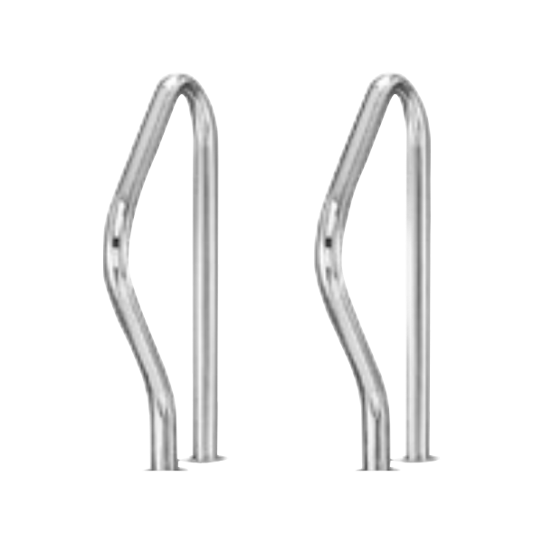 Polished AISI 316 Ø42 mm pipe, two piece pool exit grab rail supplied as a pair with welded flanges for fixing. Used as upper half for split ladders.